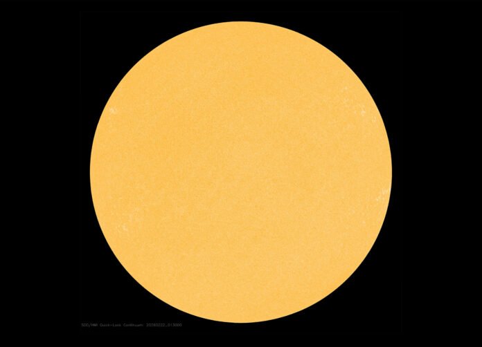 The Sun is officially spotless today! The sunspot number today, February 22nd, 2026 is 0. No sunspots, blank solar disk. pic.twitter.com/CLIwAezIzF