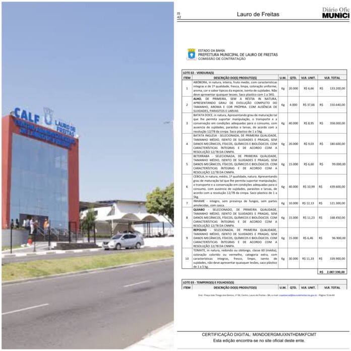 A Prefeitura de Lauro de Freitas voltou a ser alvo de críticas após a publicação de um credenciamento para aquisição de gêneros alimentícios da merenda escolar. O edital, que movimenta mais de R$ 7 milhões, apresenta não apenas valores absurdos, mas também um grave problema de transparência e acesso à informação.
