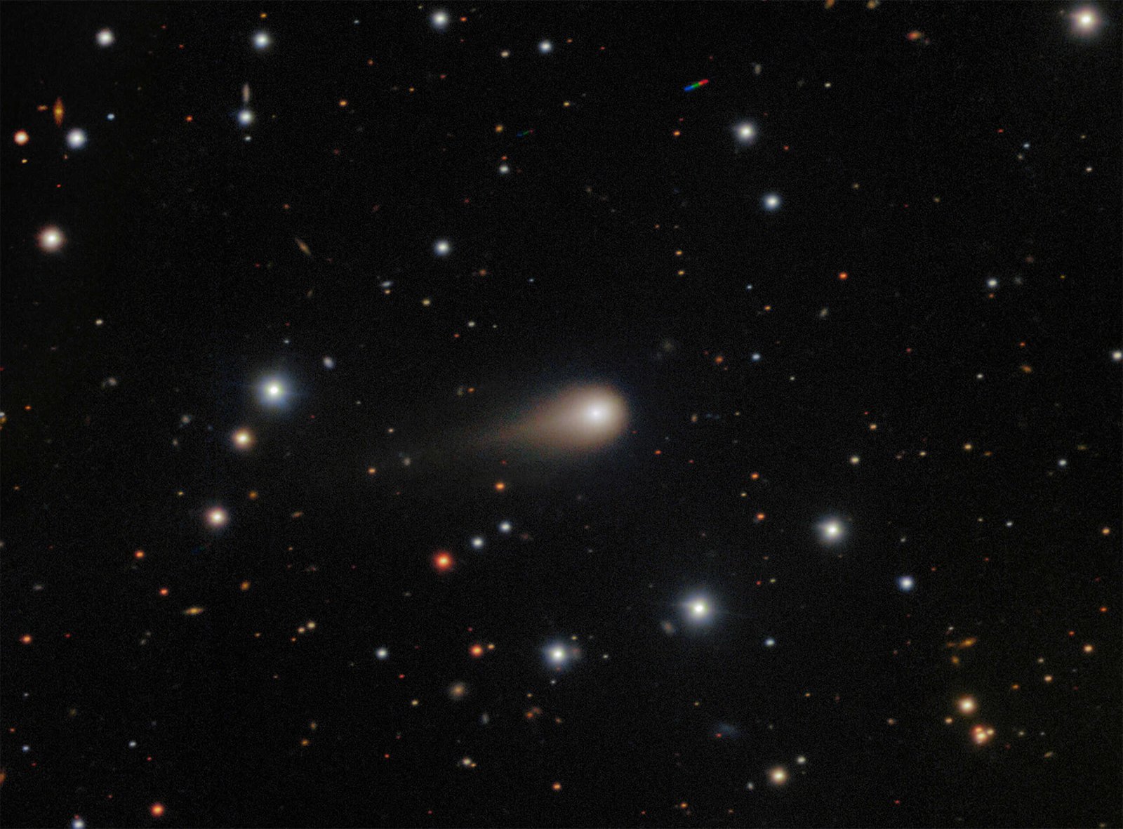 Esse objeto foi detectado em 1º de julho, viajando pelo Sistema Solar a uma velocidade quase duas vezes maior do que os “forasteiros” anteriores, o asteroide ‘Oumuamua e o cometa Borisov. Confirmado uma vez que um cometa interestelar logo no dia seguinte, ele chamou atenção por exibir uma coma (ou “cabeleira”) esverdeada, rica em poeira, e por ser muito maior do que os antecessores. Estimativas indicam um núcleo rochoso de 5,6 km de diâmetro e uma tamanho supra de 33 bilhões de toneladas.